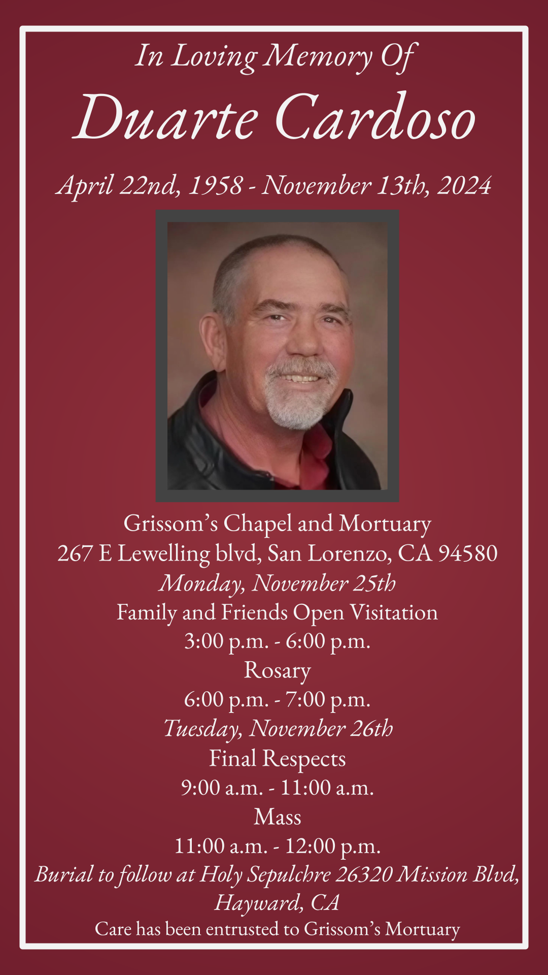 Duarte Cardoso has entered into rest on November 13th, 2024.