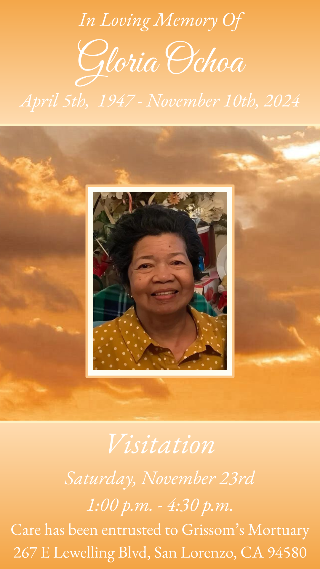 Gloria Ochoa entered into rest on November 10th, 2024 at the age of 77 years old.