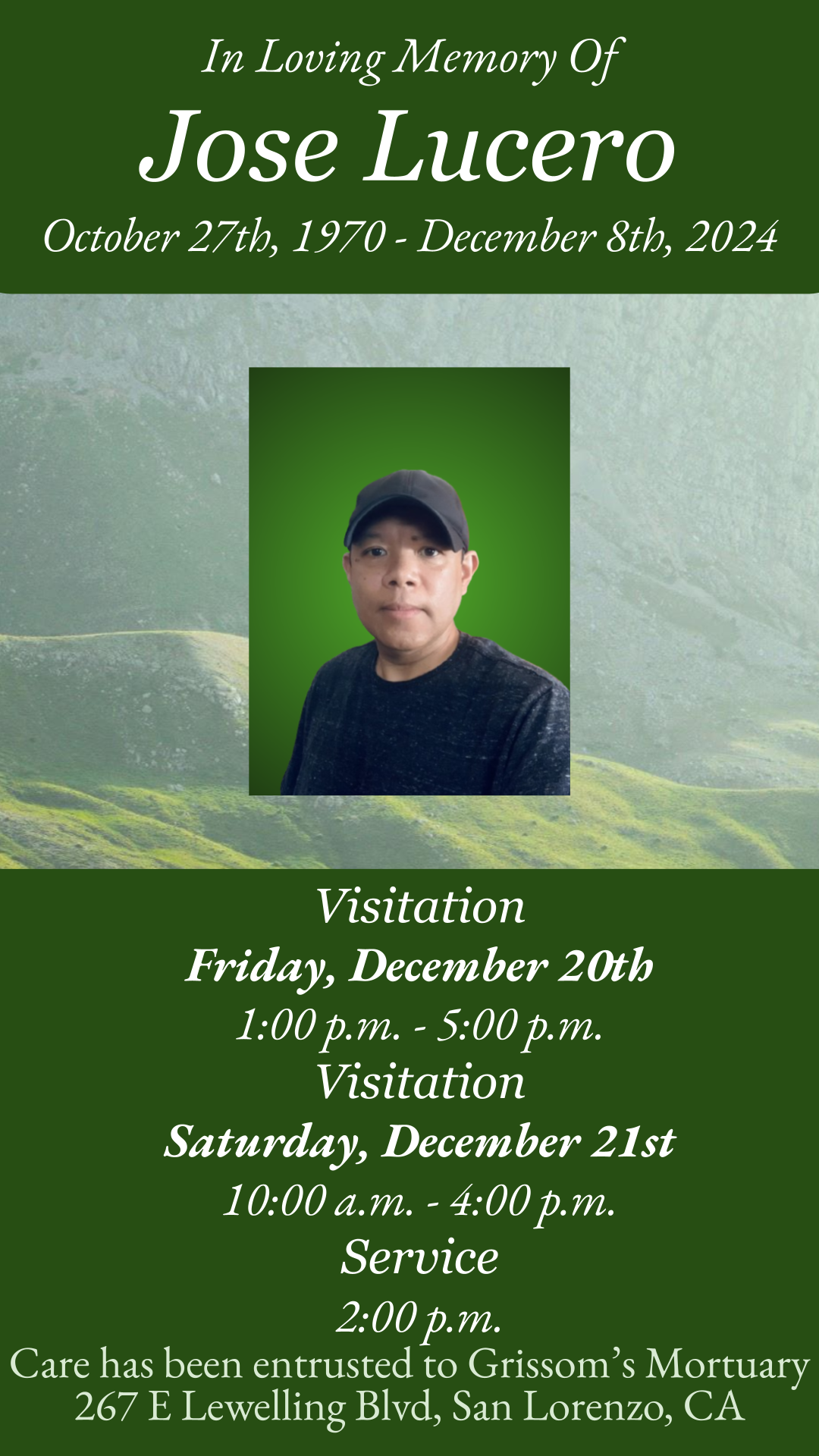 Jose Lucero entered into rest on Decemebr 8th, 2024 at the age of 54 years old.