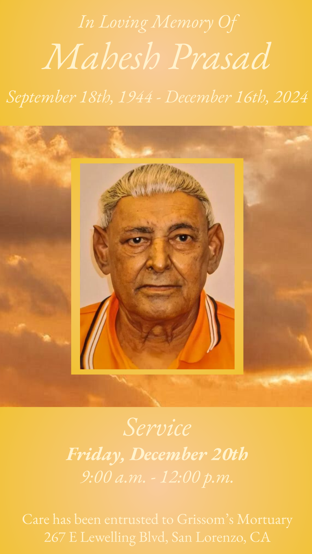 Mahesh Prasad has entered into rest on December 16th, 2024.