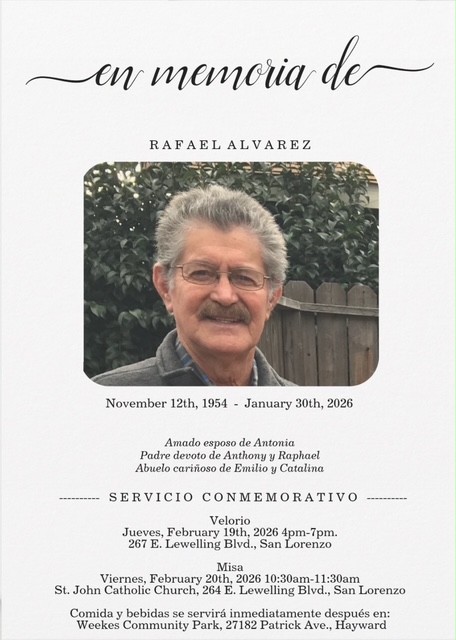 Rafael Alvarez Tejeda entered into rest on January 30th, 2026.